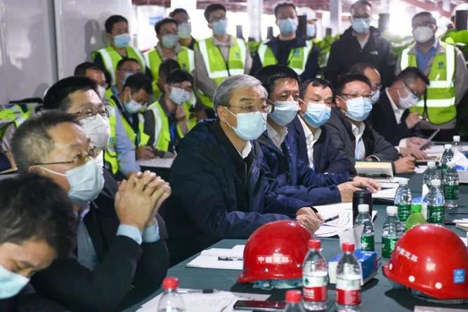 ▲3月7日晚,中建科工集团有限公司董事长王宏(中)在应急医院项目现场了解各工区施工进度。“先生产,后生活。”中国建筑旗下中建科工集团有限公司董事长王宏向全体参建人员发出动员。