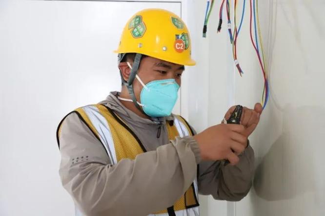 ▲3月28日,电工王梓昊在工作中。“95后”周志明本计划在2月22日和相恋4年的护士女友领证,但疫情打乱了安排。