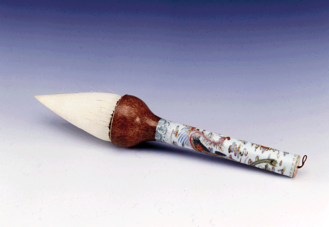就上海博物馆所藏的墨而言,可追溯至明朝。另有一些汉代的墨,是受赠的广州南越王墓出土的墨丸。明清制墨名家程君房、方于鲁、曹素功、吴天章、汪节庵等的代表作亦有收藏。就笔而言,现有馆藏最早的年代为明朝,其中不乏瓷、漆、竹、象牙等质地的笔中精品。
