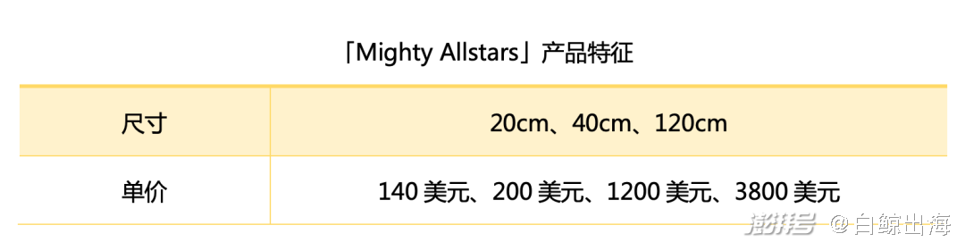除了同名品牌,「Mighty Jaxx」近年孵化出了一个子品牌「Mighty Allstars」,这个品牌是与知名球队、运动员或者体育赛事合作,基于参赛成员的形象打造限量版的艺术藏品。「Mighty Allstars」所有形象目前都采用了运动员手捧队徽闭目的设计风格,分为珍藏版、高级版、专为冠军打造的冠军版以及高约 1.2 米的真人版,价格从 148 美元至 3800 美元不等。