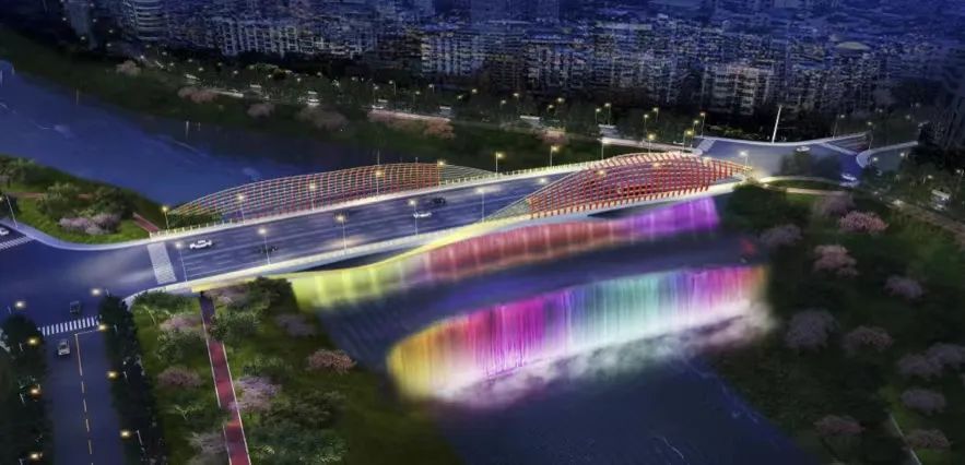 该项目道路全长214m,其中桥梁部分长约171m,横跨西溪河,总投资7206万元。其跨河主桥设计采用“鸿雁桥”造型,设计标准为城市主干道II级,宽34m(双向6车道+2个独立非机动车道),设计速度50Km/h,预计2024年3月14日建成通车。