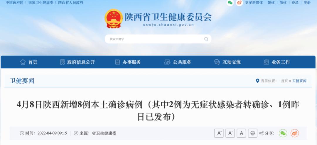 陕西8例,其中西安市7例、商洛市1例;