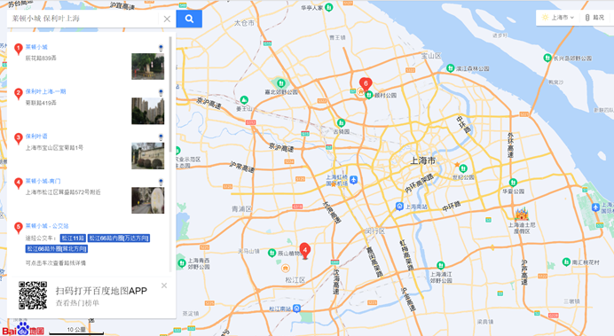 经核查,消息中提及的两个小区相距甚远。“莱顿小城”位于松江区的松江新城,而“保利叶上海”位于宝山区的顾村镇,百度地图显示,两小区之间的直线距离为32.7千米。