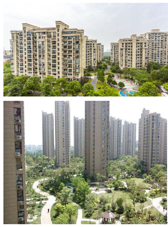 上:“莱顿小城”建筑楼;下:“保利叶上海”建筑楼。