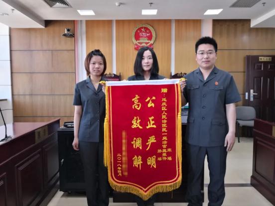 ▲宋瑶法官审判团队收到某案件当事人赠送的锦旗