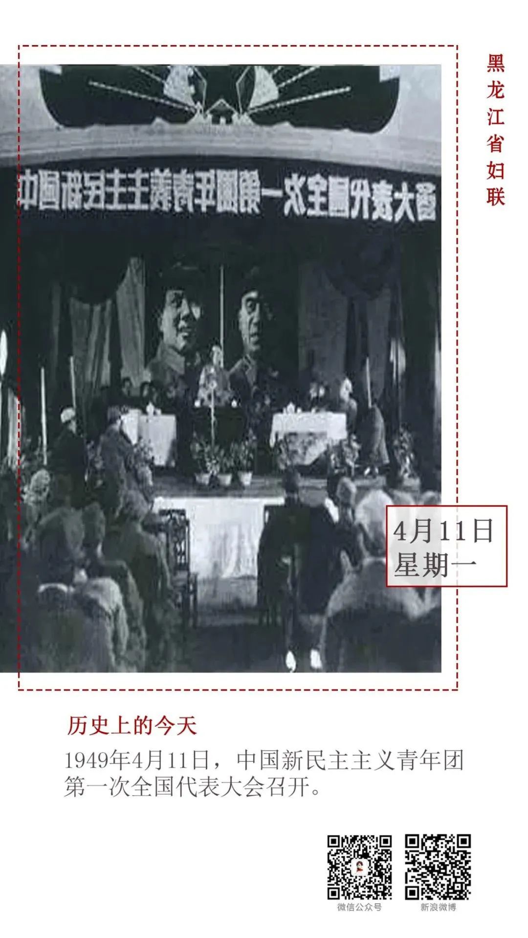 自从1946年9月中共中央提议建立民主青年团以后,经过近三年的试建团,中国新民主主义青年团第一次全国代表大会于1949年4月11日—18日在刚刚和平解放的北平举行。任弼时代表中共中央作政治报告。大会通过了团的章程、团的工作报告、大会结论等决议,选举了中国新民主主义青年团第一届中央委员会。冯文彬当选团中央总书记。尊重历史,重视历史,传承历史