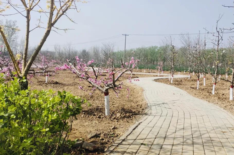 拆违只是手段,合理规划利用才是目的。前南台村召开党员和村民代表会议,利用“村级议事协商机制”广泛征求群众意见,让村民参与到村庄的建设中来。在大家的建议下,前南台村借鉴之前建设“百亩苹果园”的经验,对这片腾出来的空闲地进行了地面覆土、路面硬化、墙面美化,还种植了30000余棵果树,规划了“桃梨天下园”和“万花路”,彻底修复了村里的这处“伤疤”。