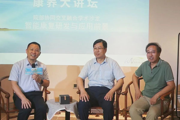 交流会上,健康产业管理学院院长陈小勇以中国老龄化现状为切入点,讲述了目前康复产业发展的相关背景,就智能康复研发现状、康复智能化发展前景如何与康养类应用型人才培养相结合进行探讨。