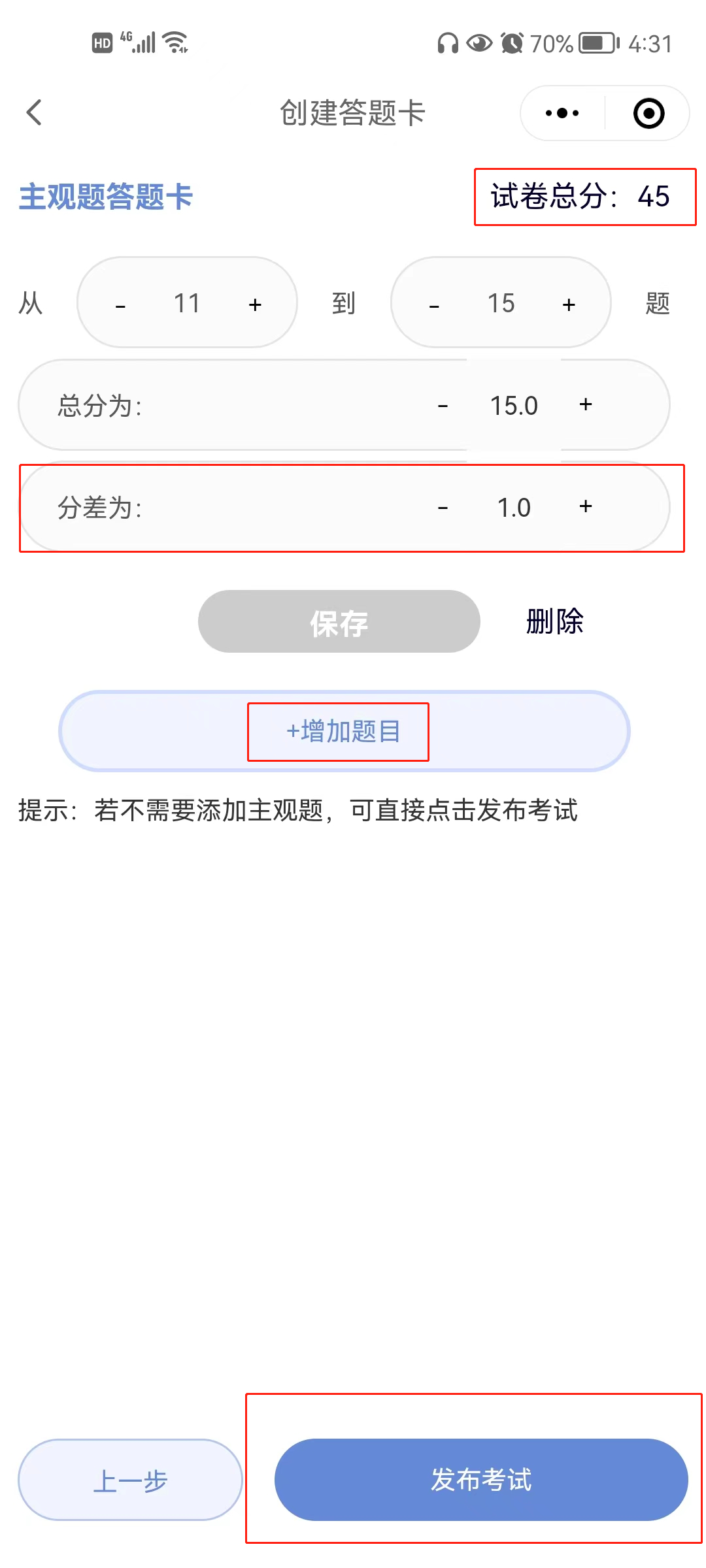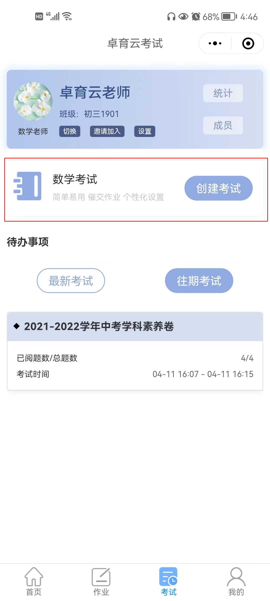v 完成以上操作,即可发布考试,对应班级的学生将在设置时间内于卓育云小程序内的考试模块完成作答。