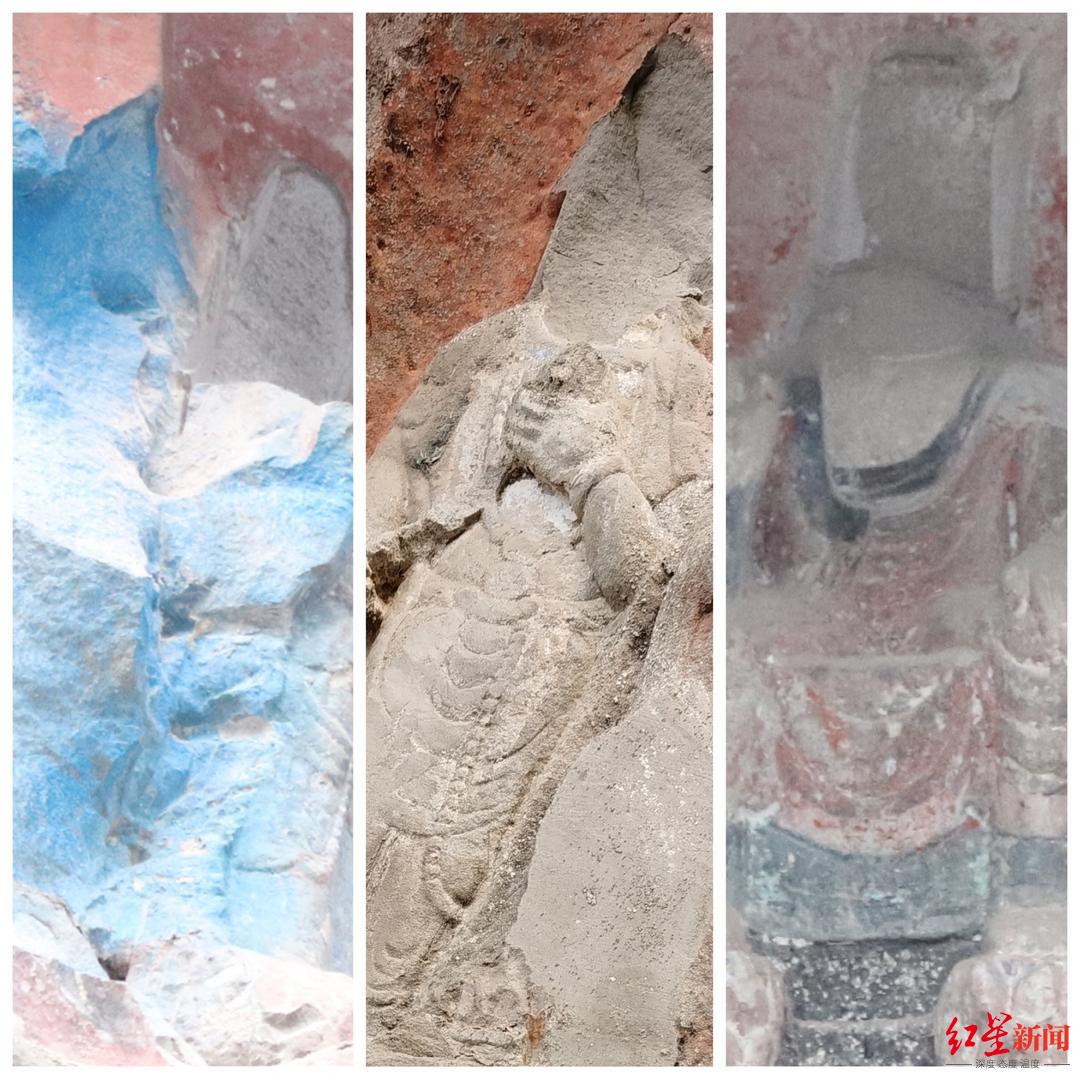 部分摩崖石刻造像(佛像)被盗前后对比