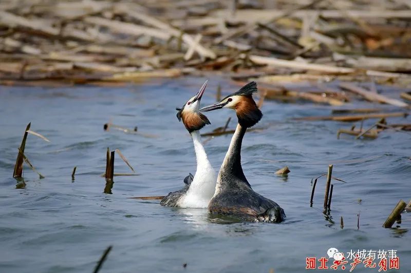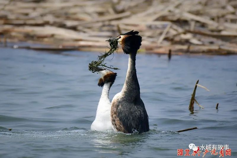 每年3月份,成群的凤头䴙䴘都会从南方越冬后陆续飞回迁安市黄台湖景区,在这片碧草如丝、芦苇茂盛的水域筑巢、产卵、繁衍后代。