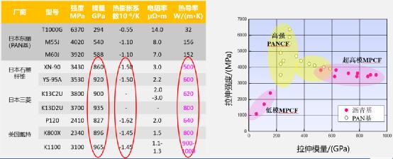 国外高性能沥青基碳纤维的性能数据 图片来源:天策科技