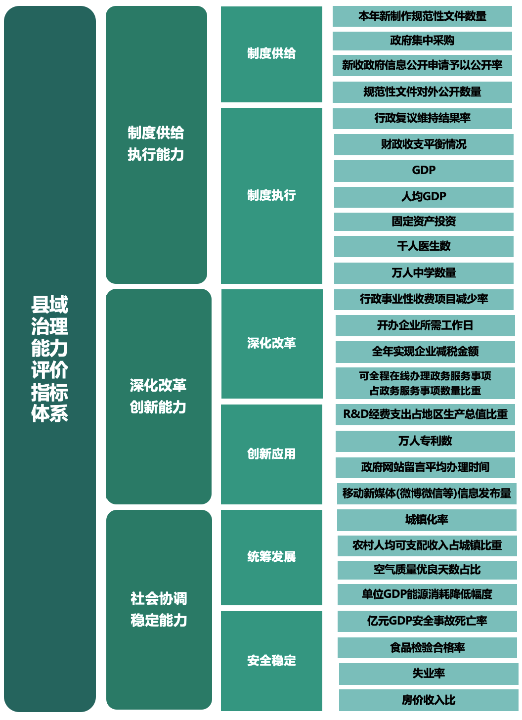 治理能力百强县榜单在对政府“行政职能”的考量基础上融入对“发展情况”的关注,不仅考察了县域政府治理的行政办事效率,还考察了县域政府治理后的效果。