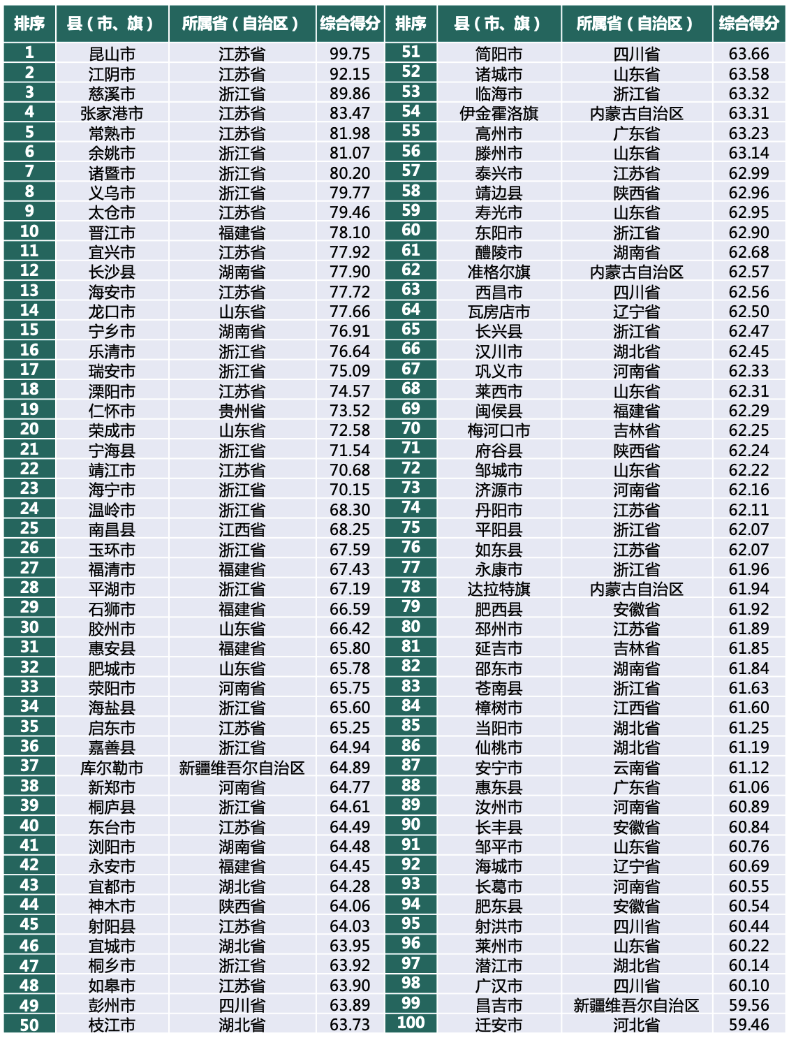 最新治理能力百强县发布:东部入榜县域数量达到58个