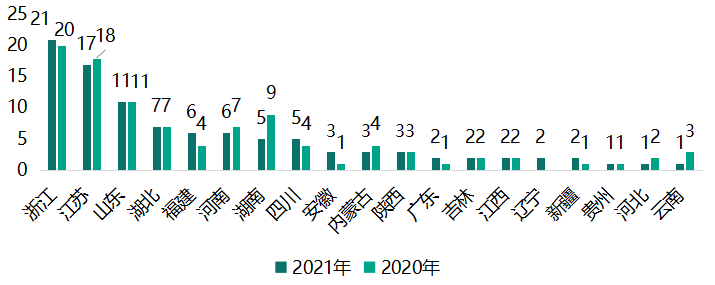 近两年百强县入榜数量分省(区)分布图 数据来源:赛迪顾问 2022,04