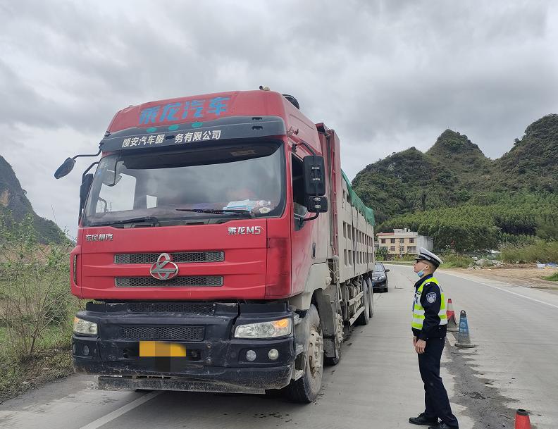 3月22日,李某强驾驶桂KR***2重型自卸货车行驶至国道321线300公里路段被梧州市藤县公安局交警大队机动中队执勤民警查获。