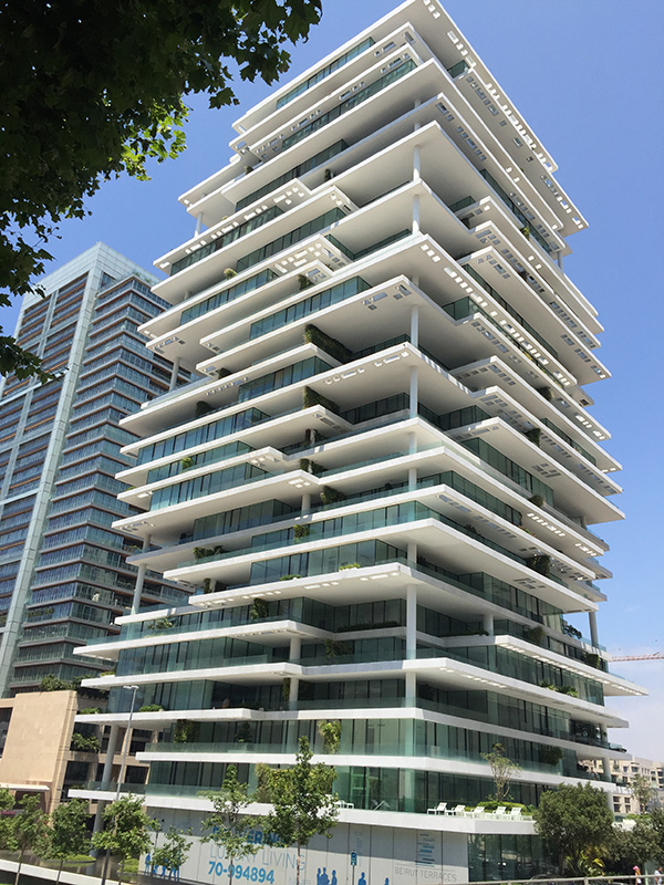 市中心的建筑风格十分混搭凌乱,也正是这样的风格提醒了一场场可怕的战争曾经在此轮番上演。各种造型设计新颖的公寓由废墟中升起,向贝鲁特人预示了一个可靠的未来,其中不少还是名家的设计,比如赫尔佐格和德梅隆事务所设计的贝鲁特阳台(Beirut Terraces)是目前全市最贵的公寓,层层叠叠富有层次的楼房,风格十分前卫。一些仿古风格的楼房及街道,看起来太新,旨在复原这里曾经有过的欧式地中海情调。然而废墟依旧是废墟,一口破墙里有破烂的沙发,墙上挂着一家人的生活照。
