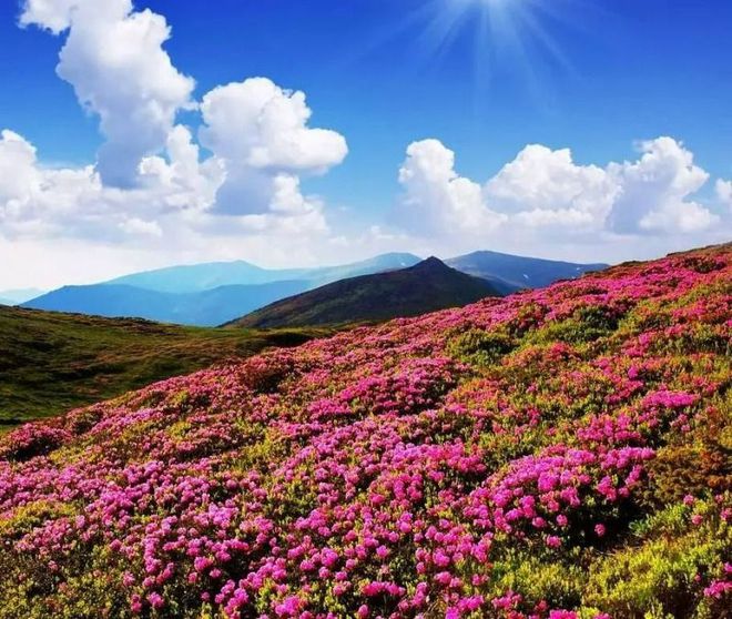 雪山瞬息万变的气象,造就了高山湖泊、冰雪世界、杜鹃花海、云海、日出等不同季节中的别致景观。