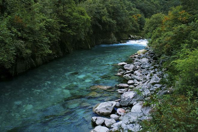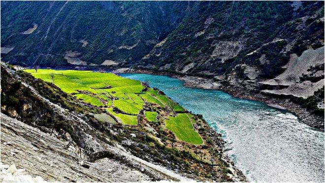 在高黎贡山和担当力卡山之间穿流而过的独龙江,水流很急,水流量很大,是中国少有的常年碧绿色流动的大河,江中水生鱼类众多,自然生态环境保存非常完整,长期以来很少有人为破坏,从空中看独龙江就象飘洒在高黎贡深山峡谷中的一条绿丝带,走累了就看着碧绿清澈的独龙江水,心中极其舒畅。