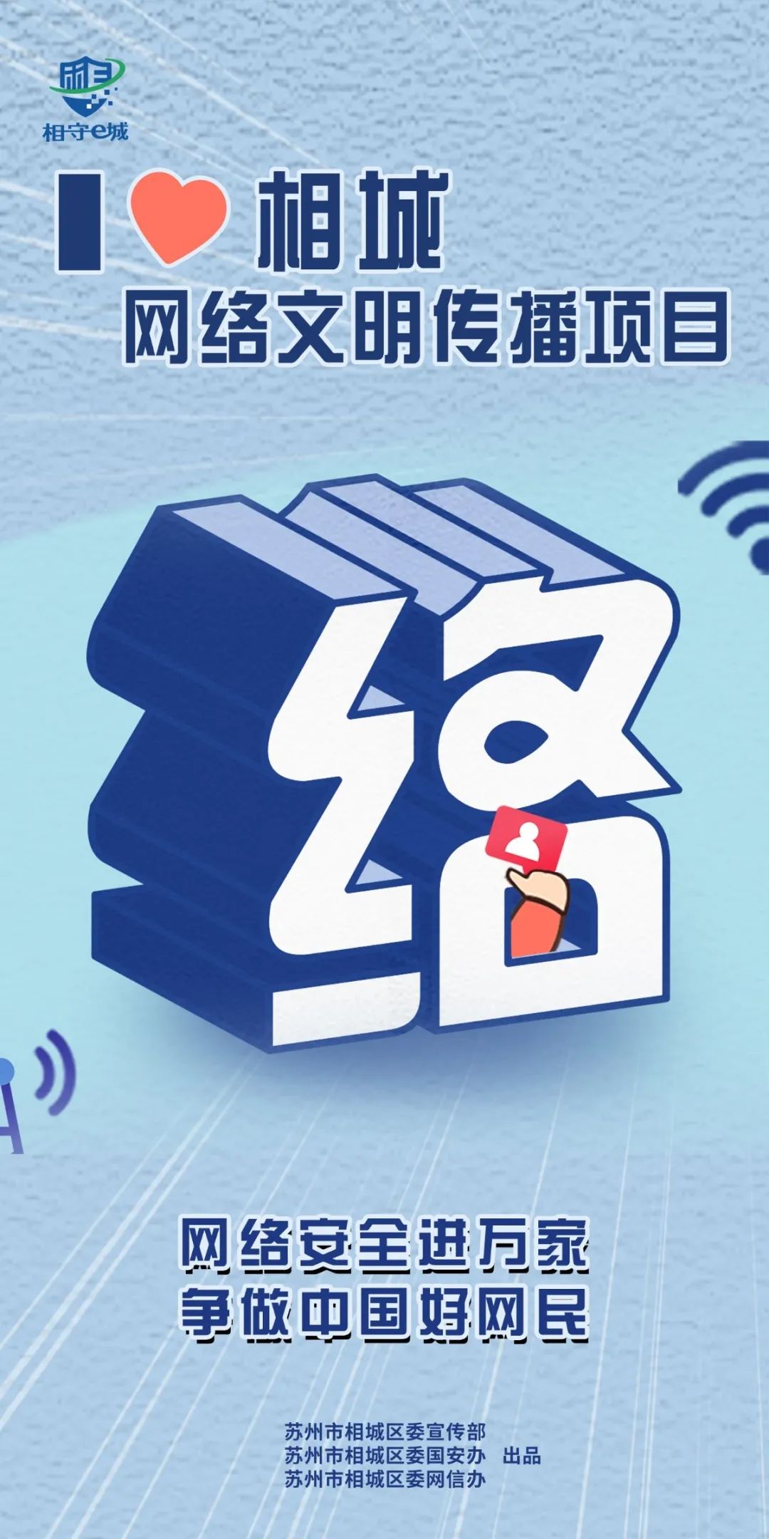 为了进一步增强全民国家安全意识,特别是提高全社会数字素养和技能,区委宣传部、区委国安办、区委网信办联合策划的“I️❤相城网络文明传播项目”开始啦!