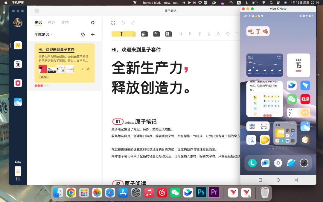 虽然现在这个版本的原子套件功能十分简单,除了操控手机就是查看笔记和日历,甚至都不能把照片拖拽到电脑上。。。但真正用实际行动打破 Android 和 Mac 壁垒的手机厂商,vivo 可能是国内第一家,仅次于三星 DeX 。
