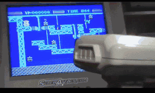 这个游戏就是《Gyromite》,NES的首发游戏之一。需要配备在当时堪称黑科技的外设——R.O.B.(机器人)才能玩。看着很酷炫,但其实玩起来很尴尬。喷神James的第100集视频里就狠狠吐槽了这个东西,感兴趣的同学可以去找来看看。