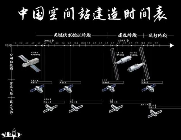 科研人员将对空间站关键技术验证情况进行全面评估,结果满足要求后,空间站转入建造阶段。这一阶段将依次发射天舟四号货运飞船、神舟14载人飞船、实验舱Ⅰ和实验舱Ⅱ,以及天舟五号货运飞船和神舟15号载人飞船,共计六艘航天器,最终完成T字构型空间站组合体的建造,整个组装建造过程将历时约七个月。