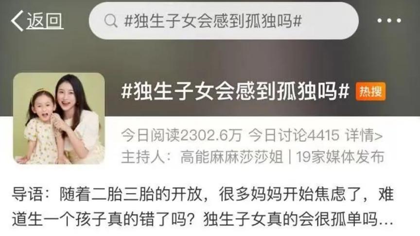 生一个孩子是不是不利于孩子健康成长?独生子女是不是会缺失陪伴,成为孤单的一代?#独生子女会感到孤独吗#的话题一度登上微博热搜榜,让广大网友争论不休。