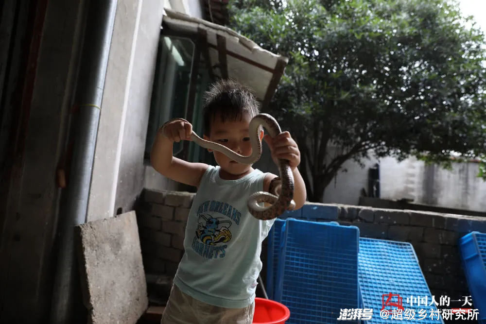 当地有一句话说,种十亩地不如养一屋蛇。在村里,蛇是三岁小孩拿在手里、缠在脖子上的玩具,甚至是陪小学生写作业的宠物。