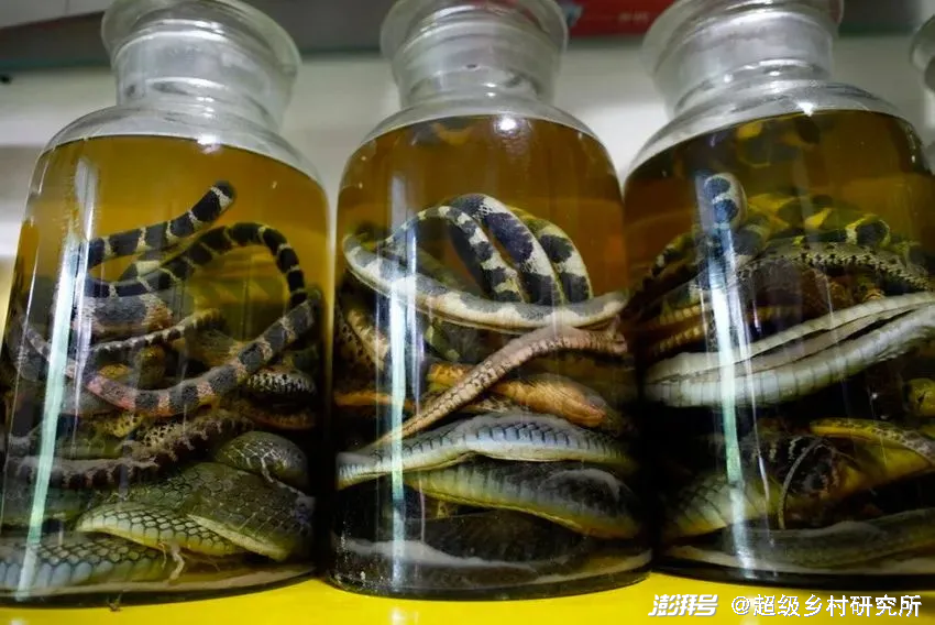 还有蛇头、蛇皮、蛇骨都能卖钱。蛇褪下的蛇皮,是对皮肤病有药用价值的“龙衣”;蛇胆能清热解毒,一坛能祛寒除湿的蛇酒则可以卖七八千元。蛇王杨洪昌的蛇酒制作工艺,也被列入了县级非物质文化遗产名录。