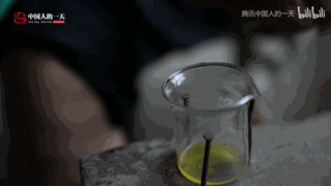 取毒师正在给蝮蛇取毒,子思桥村里养得最多的毒蛇就是蝮蛇。取毒师徒手抓住蛇头,然后迅速将蛇的牙齿靠近一只小量杯的内壁,挤压在蛇头两侧的毒腺部位就能挤出蛇毒。图源/腾讯 中国人的一天