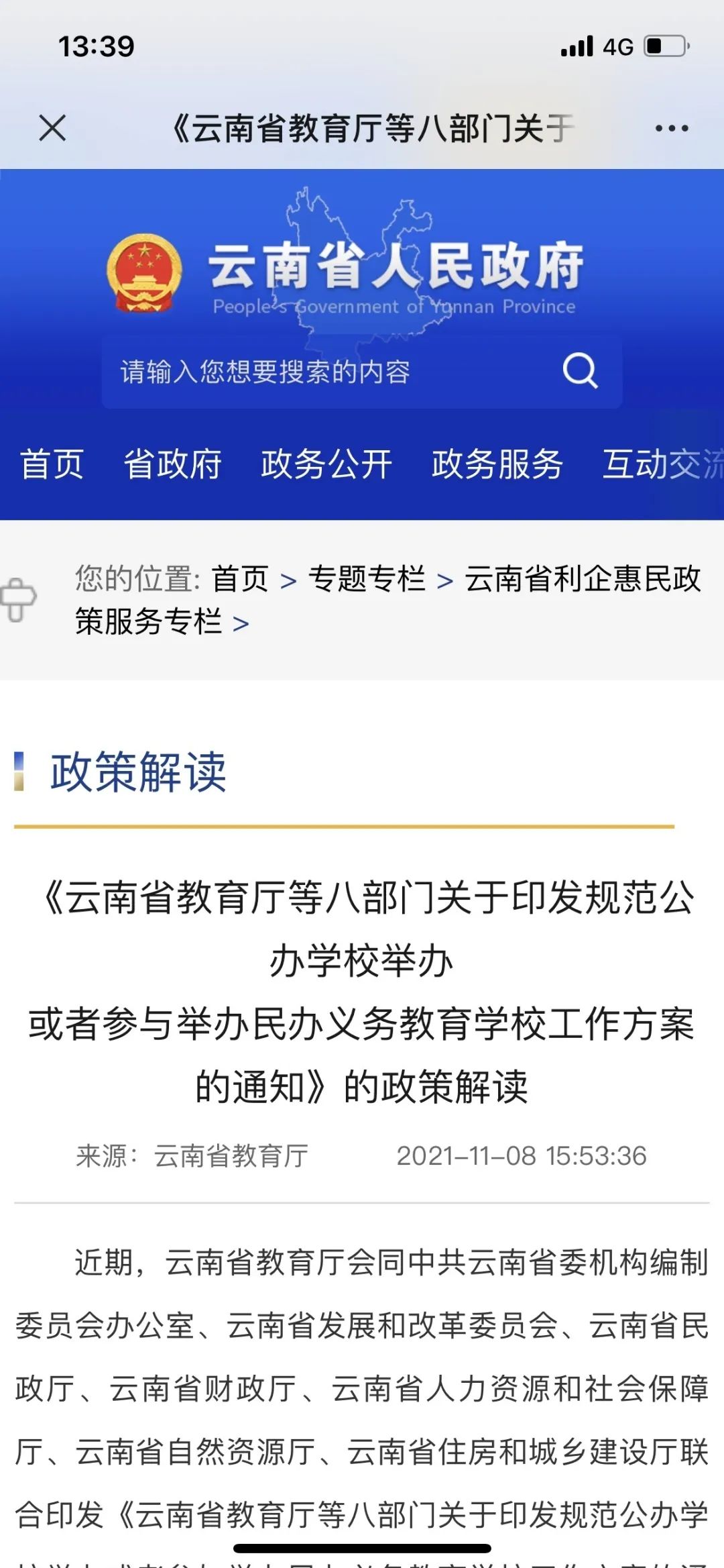 此次昆明公布的35所“民转公”学校,大多数符合上述一二两条。2021年11月8日,云南省教育厅等八部门联合制定的《关于规范公办学校举办或者参与举办民办义务教育学校的工作方案》公布,对符合要求的“公参民”学校转设为公办学校做出了时限要求,如公办学校单独举办或与各地政府及相关机构合作举办的民办义务教育学校,力争于2022年12月31日前转设为公办学校,该方案的出台正式拉开了云南“民转公”的序幕。