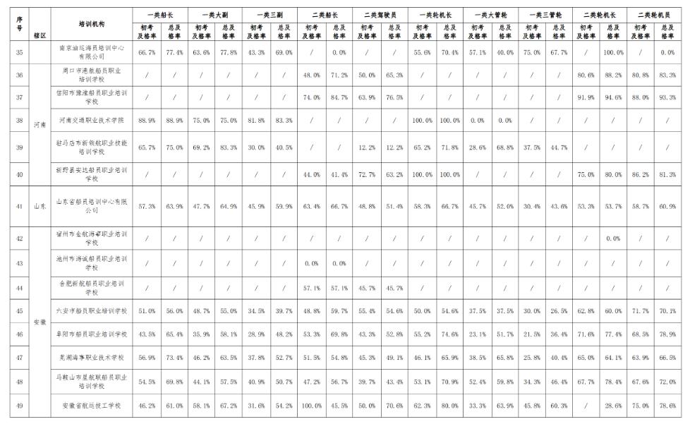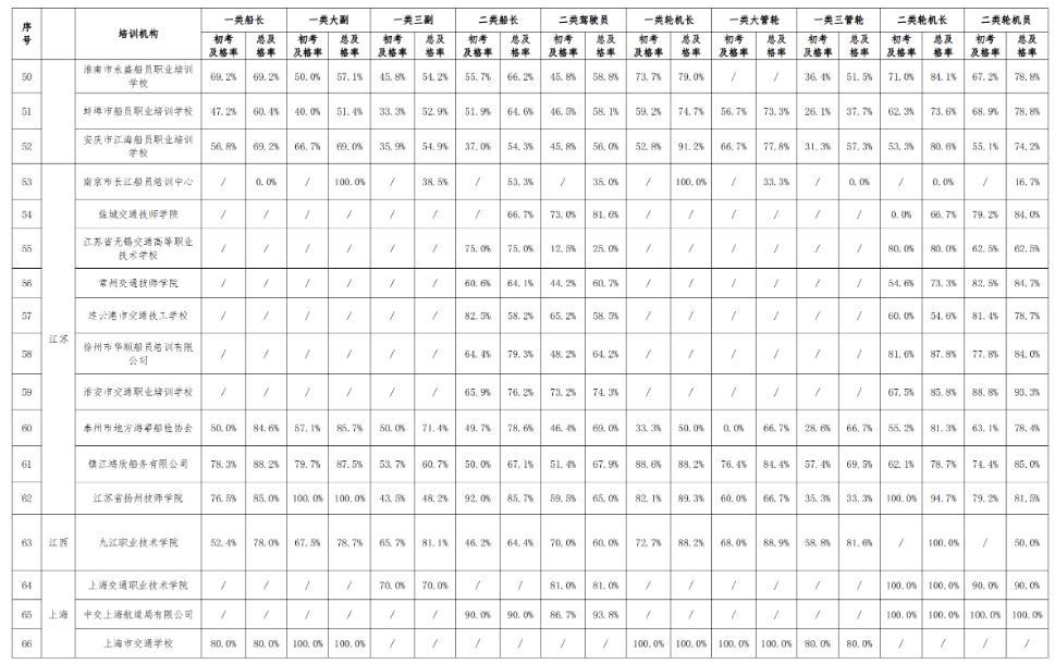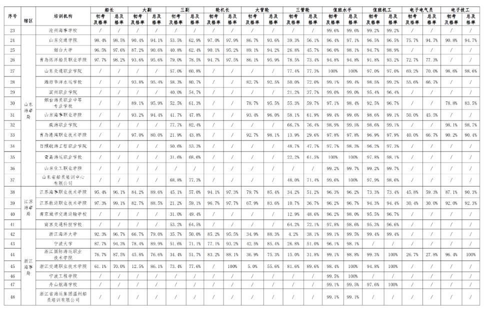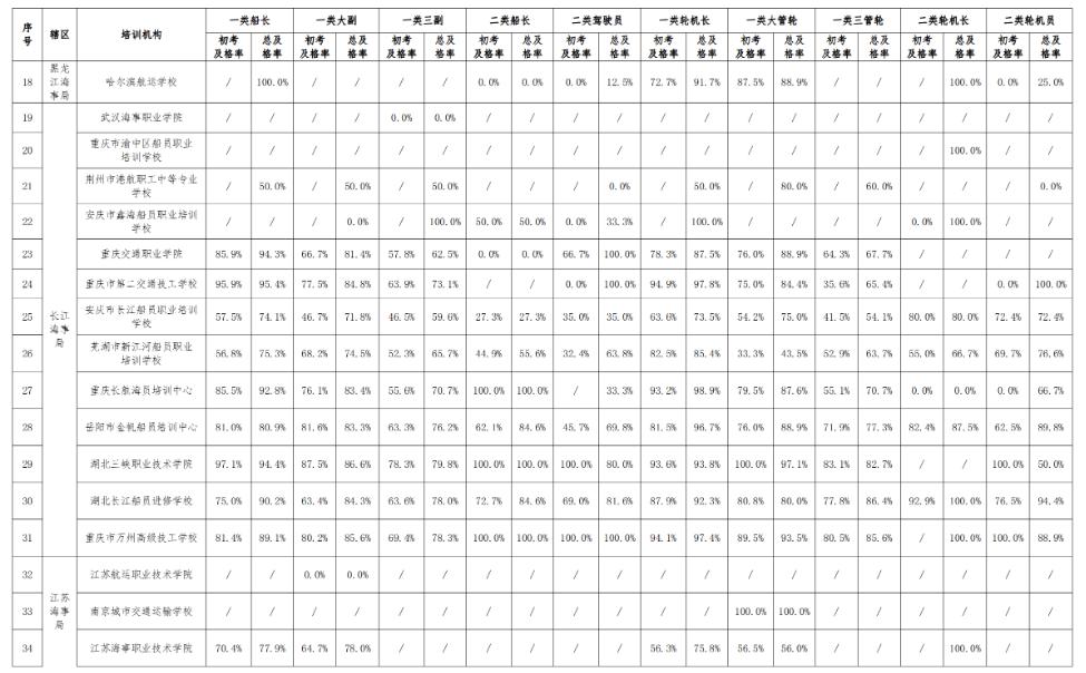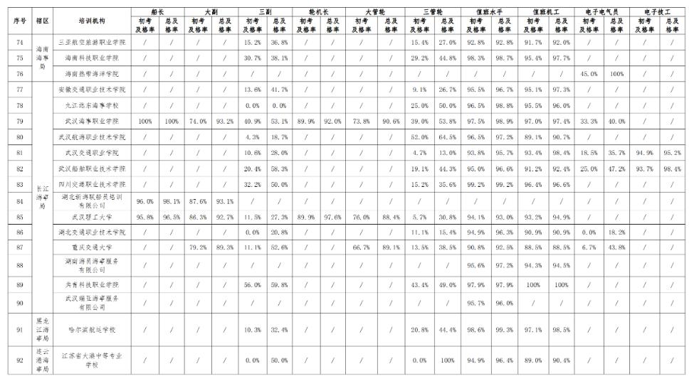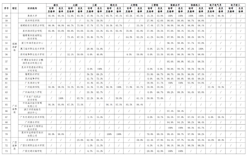 中华人民共和国海事局关于公布船员培训机构适任考试及格率的公告