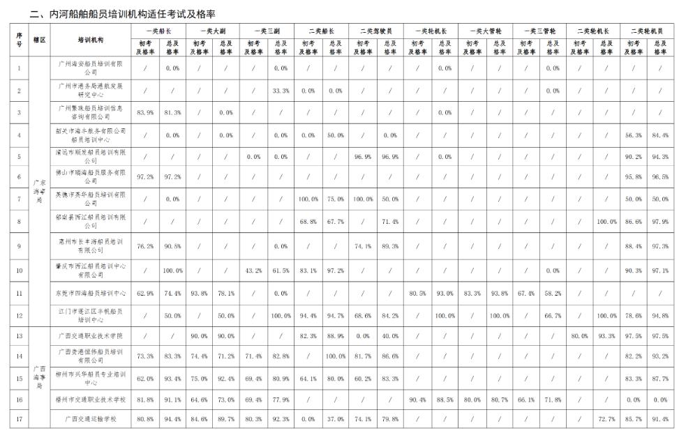 原标题:《中华人民共和国海事局关于公布船员培训机构适任考试及格率的公告》