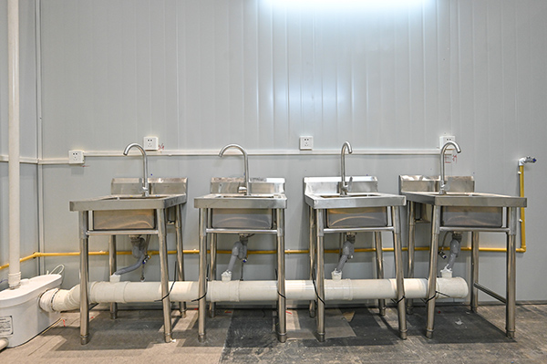 当时,部分医护用房、急救室、污洗间、淋浴间、厕所,以及三号馆南面140个洗脸池的给排水管道施工都是我们负责。