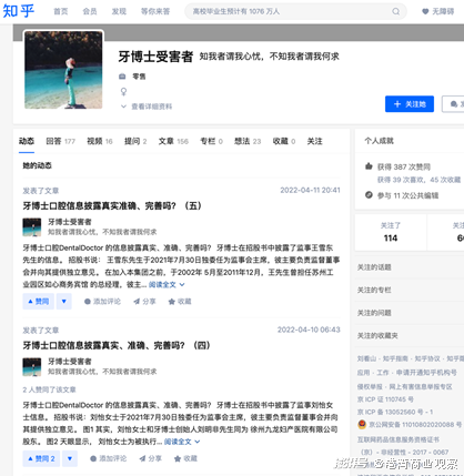 或许正是因为这种情况,牙博士的医患矛盾并不少见。《港湾商业观察》留意到知乎上一位网名叫“牙博士受害者”的贴文。其中有的文章已经显示为内容无法显示,有的内容触目惊心。