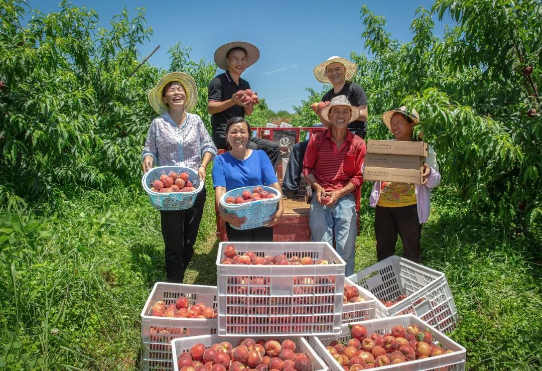 和邓熊一样,金凤村全村727户农户入股合作社,和合作社建立起利益共享机制,每年的经营收益,合作社分30%用于发展管理、再生产,帮扶贫困户等公益性事业分5%,剩下的65%分给入股农民。与此同时,合作社还统揽全村3500亩桃园规划建设管理工作,近100名村民参与到了4万余株果树的管理中来,让村民们增加了收入。