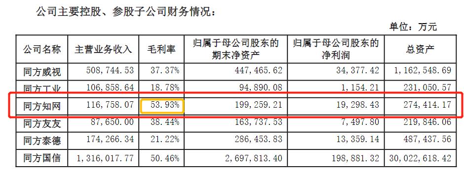 同方股份2020年年报仅2020年一年,同方知网主营业务收入11.68亿元,毛利率高达53.93%;2021年上半年,该公司主营业务收入4.96亿元,毛利率达51.30%。