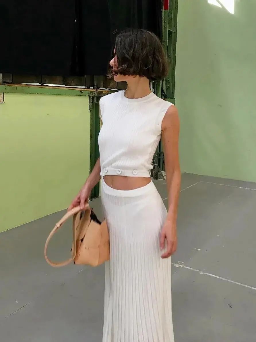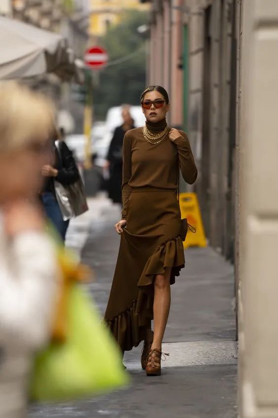 像这样简单的一身纯色系搭配,搭配一些首饰、包配等点缀,对造型的亮点进行重点突出,对于搭配新手来说,适配度满分!