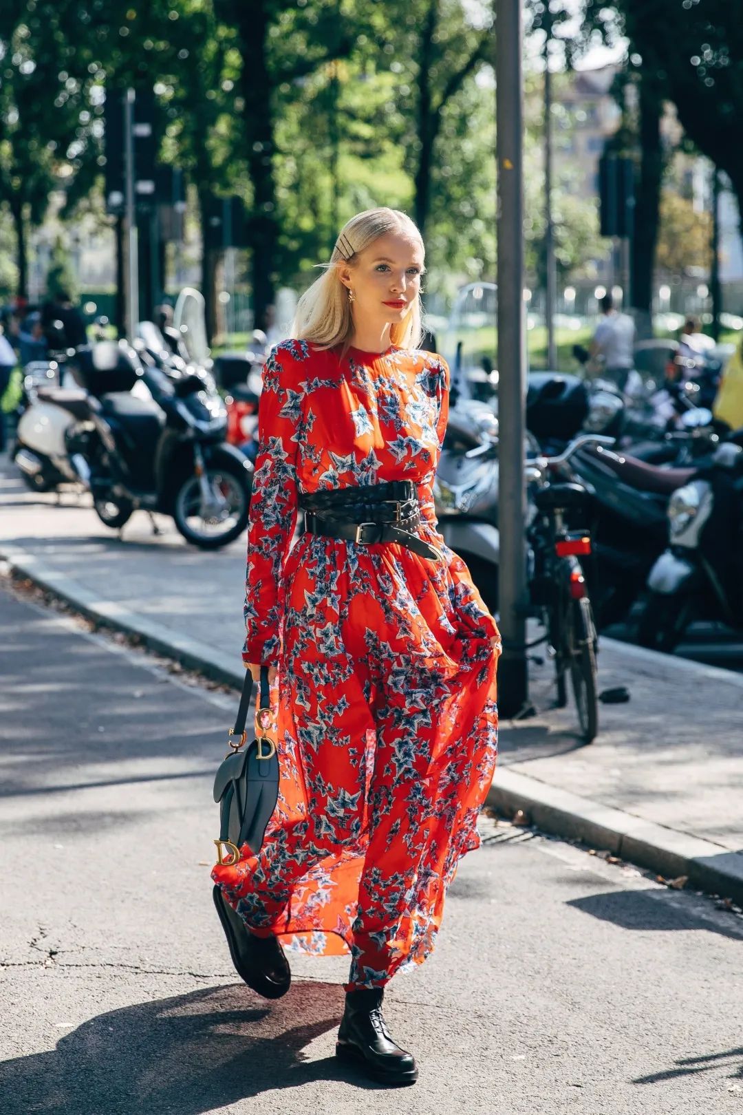 就连率性的大表姐刘雯穿上抽象花卉印花裙,整个人都变得无比性感、贵气优雅!配上一双尖头靴,“大boss”就是她本人准没错了!