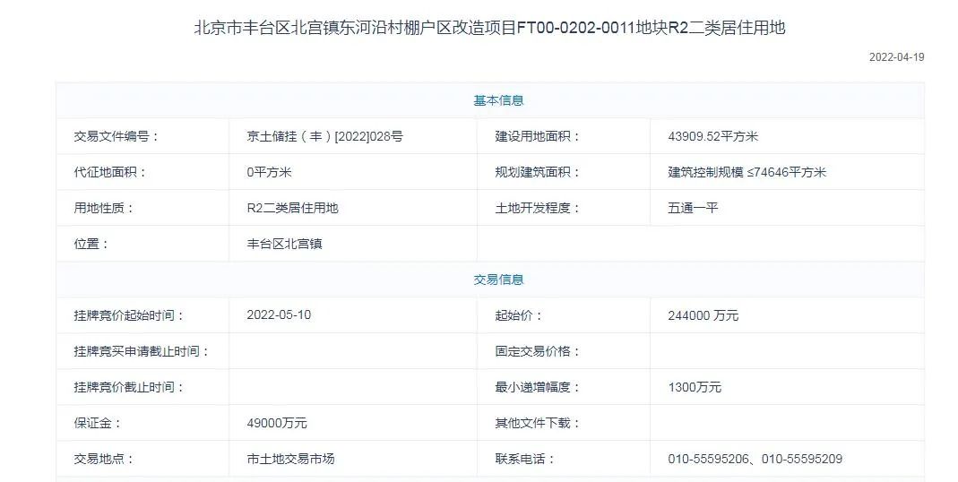 4月18日,记者获悉丰台北宫镇东河沿村棚户区改造项目2地块已完成预申请手续,即将转入北京第二批次集中土拍。