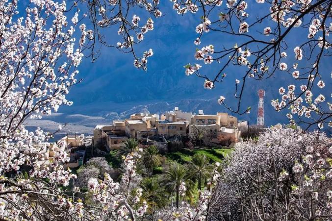 阿曼著名旅游景点瓦坎村杏花绽放。其花色又红又白,胭脂万点,花繁姿娇,占尽春风。