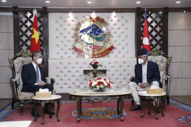 2022年3月26日,中国国务委员兼外交部长王毅在访问尼泊尔期间与尼总理德乌帕举行会晤。