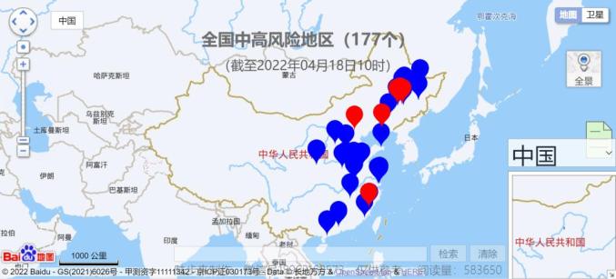 截止2022年4月20日9时:全国共有高风险地区9个,其中吉林省长春市3个;辽宁省营口市1个;北京市1个;福建省宁德2个;黑龙江省哈尔滨市2个。