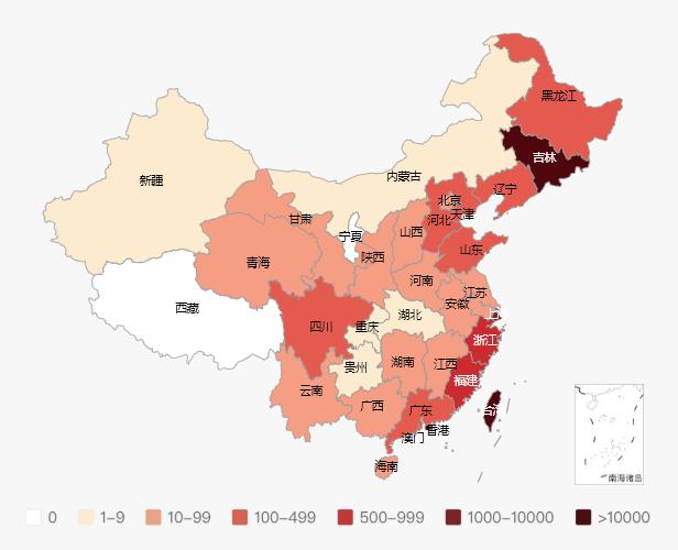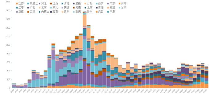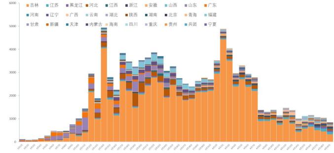 图6 1月1日以来全国各省份累计病例(除上海、吉林)