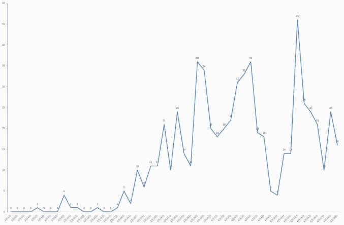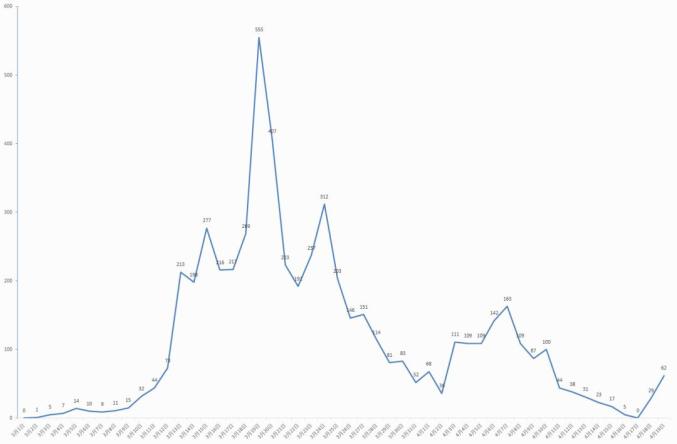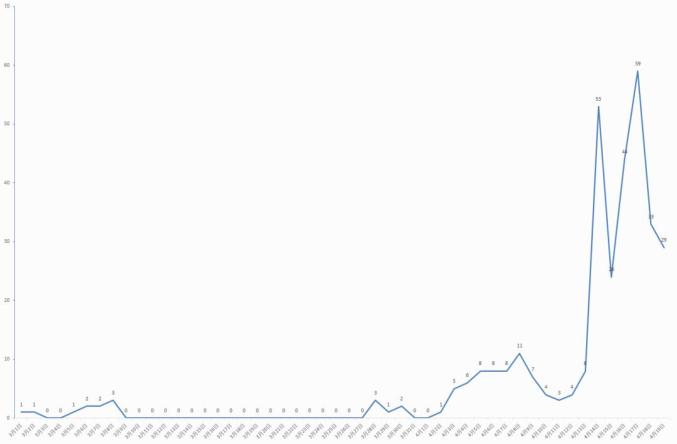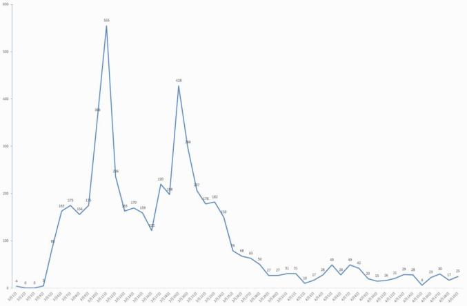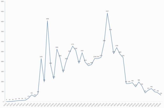 图1 全国每日新增示意图表1 全国每日新增统计表