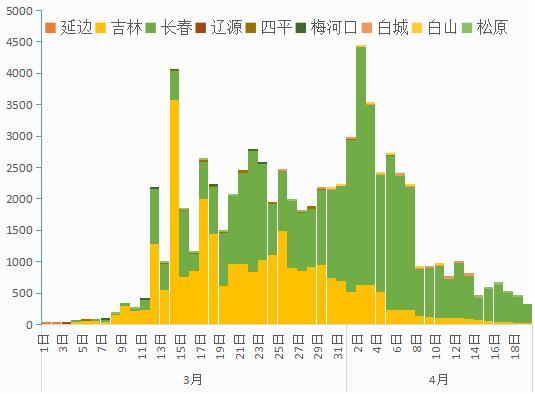 2、吉林省:4月19日0-24时,全省新增本地确诊病例133例(轻型116例、普通型6例、重症11例),其中长春市125例(含69例无症状感染者转为确诊病例)、吉林市5例、延边州3例;新增本地无症状感染者262例,其中长春市243例、吉林市13例、延边州6例。以上感染者均已转运至定点医疗机构隔离治疗,对以上人员的密切接触者、次密切接触者均已开展追踪排查,并落实管控措施,对其生活和工作场所进行了终末消毒。4月19日0-24时,全省新增治愈出院确诊病例603例,其中长春市418例、吉林市162例、白城市13例、四平市8例、白山市2例;新增解除隔离医学观察无症状感染者842例,其中长春市657例、吉林市179例、白城市2例、白山市2例、四平市1例、松原市1例。吉林省疫情研判