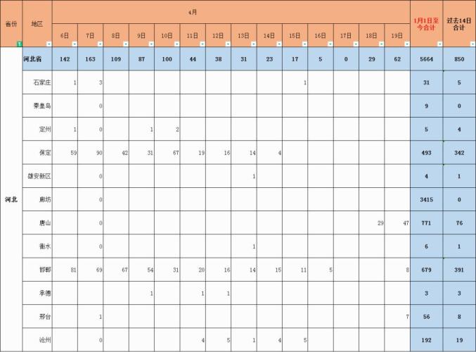 5、河北省:2022年4月18日0—24时,河北省新增本土新型冠状病毒肺炎确诊病例1例(唐山市);新增本土无症状感染者28例(唐山市)。治愈出院3例,无症状感染者解除医学观察42例。截至4月18日24时,河北省现有本土确诊病例23例;尚在医学观察本土无症状感染者793例。河北省疫情研判