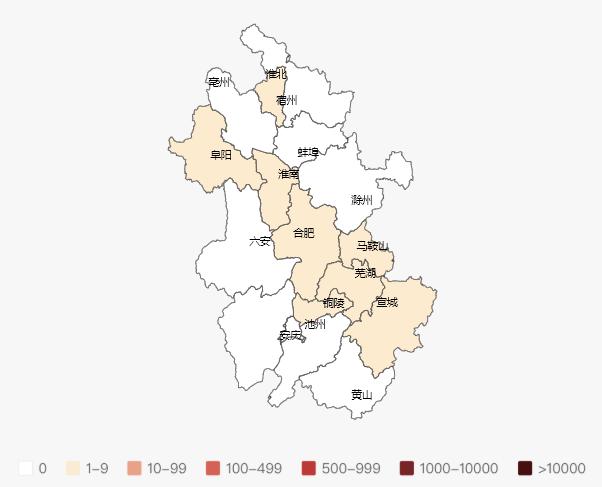 截至4月19日24时,安徽省尚在医学观察的无症状感染者601例(境外输入1例,安庆市宜秀区5例,宿州市埇桥区4例,滁州市琅琊区1例、天长市44例、明光市3例、定远县3例、南谯区1例,马鞍山市当涂县3例,铜陵市铜官区2例、义安区1例、枞阳县1例,合肥市瑶海区1例、蜀山区14例、包河区5例、长丰县1例,芜湖市繁昌区1例、弋江区7例、镜湖区14例、鸠江区10例,阜阳市颍州区93例、颍上县22例、太和县3例、颍东区2例、临泉县1例,淮南市凤台县70例、寿县1例、田家庵区21例、谢家集区3例、八公山区1例、大通区1例、潘集区2例,宣城市宣州区11例、广德市4例,六安市金安区13例、裕安区214例、霍邱县11例,黄山市祁门县5例,亳州市谯城区1例)。