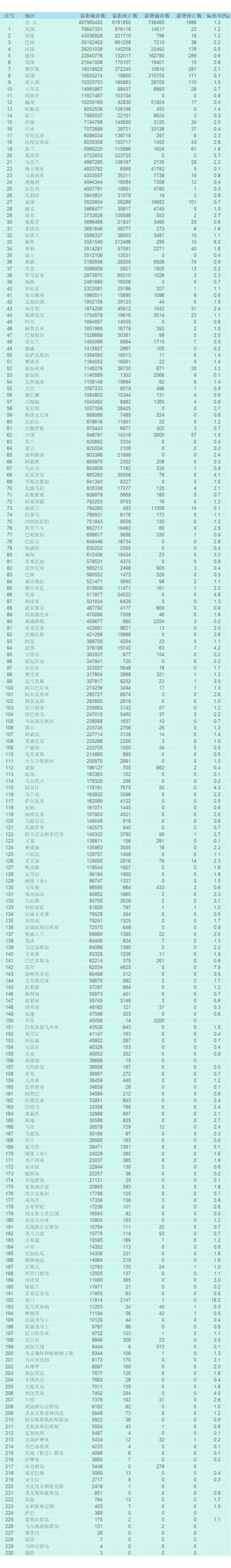 1、全球疫情:4月19日全球单日新增确诊病例404271例,单日新增病例最多的国家依次是韩国、越南、日本、澳大利亚、德国。